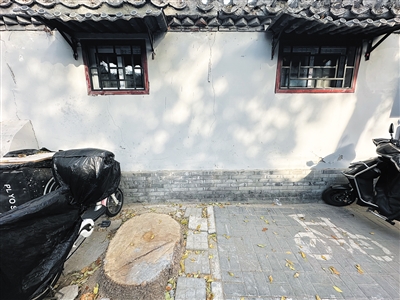 11月,永恒胡同11號院門口只剩下白蠟樹的樹樁。新京報記者 慕宏舉 攝