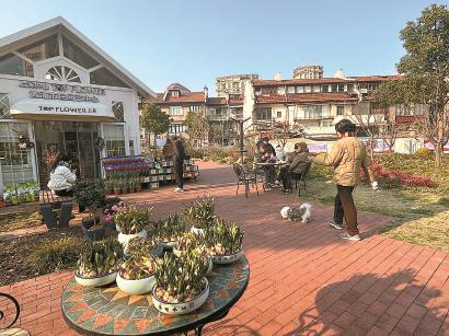 位于新天地的追夢園中,有一幢十分顯眼的奶白色小木屋,木屋兩側的花架上擺放著盛開的各色鮮花,鮮花兩側的木質小盒里則盛放著植物種子。在社區(qū)園藝師的精心打理下,不同種類的盆栽與花束相互掩映,各美其美。