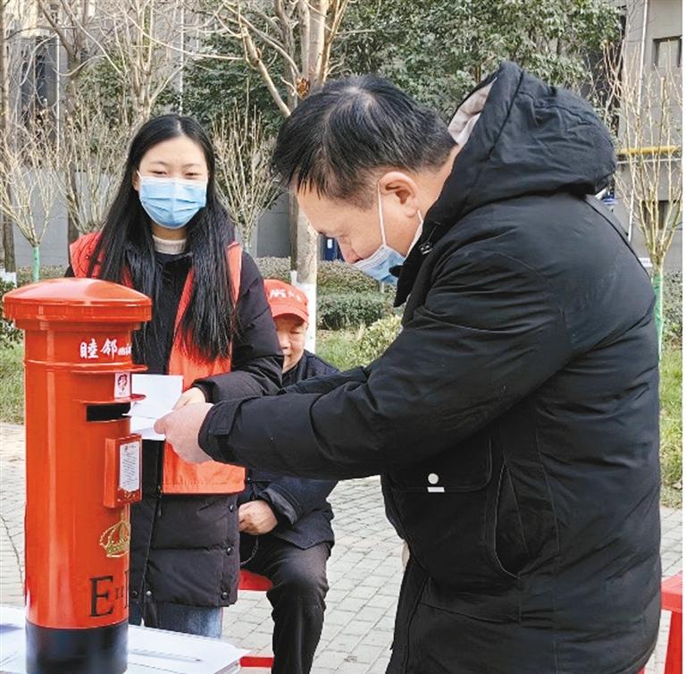 “叔叔阿姨,這是社區(qū)的‘睦鄰密盒’,有什么煩心事或者有什么需求和心愿,都可以寫下來(lái)投進(jìn)去?!?/p>