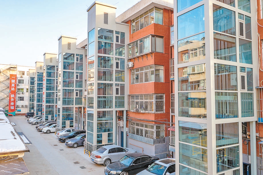 寒冬時節(jié),走進(jìn)石景山區(qū)金四區(qū)教工樓小區(qū),樓北側(cè)的新電梯整齊劃一?!爸挥酶囊淮危堇锱土?,電梯加上了,地下的排水熱力管道也要通通換新,挺好!”提起改造,已近古稀之年的居民王振相連連稱贊。