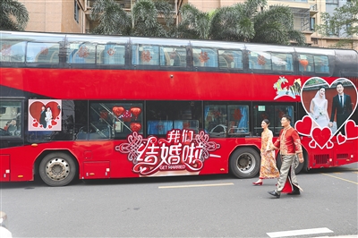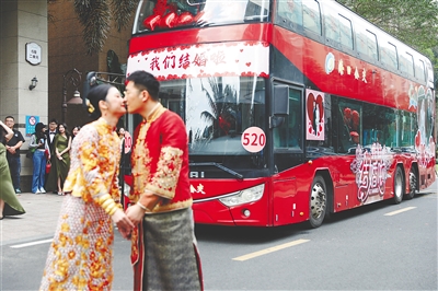 在海口關(guān)注大巴車當(dāng)婚車的年輕人并不在少數(shù)。“每周我們都會(huì)接到咨詢電話,我們會(huì)預(yù)留專門車輛運(yùn)營(yíng)婚車業(yè)務(wù),有雙層觀光巴士也有常規(guī)大巴?!焙?诮煌都瘓F(tuán)公交運(yùn)營(yíng)分公司運(yùn)營(yíng)部工作人員李國(guó)安介紹,大巴車作為婚車使用,符合綠色出行的環(huán)保理念。婚車的車身和內(nèi)部可以根據(jù)新人要求進(jìn)行個(gè)性化定制。婚車使用當(dāng)天,公司會(huì)安排一名駕駛員和一名管理人員全程陪同,做好相關(guān)后勤保障服務(wù)。