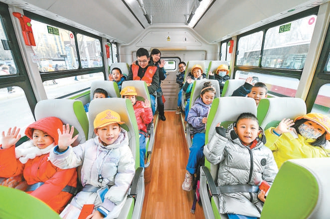 通學(xué)195路是石景山區(qū)首批開通的通學(xué)線路之一。臨近發(fā)車,“小豆包”在家長陪伴下陸續(xù)抵達(dá)?!敖裉熘酪▽W(xué)公交,非常興奮,一大早就爬起來,自己穿衣服、刷牙。孩子覺得自己能獨(dú)立坐公交車,像個(gè)小大人了?!奔议L史姍姍說,她家就住對(duì)面小區(qū),通學(xué)車方便又安全,價(jià)格也實(shí)惠。
