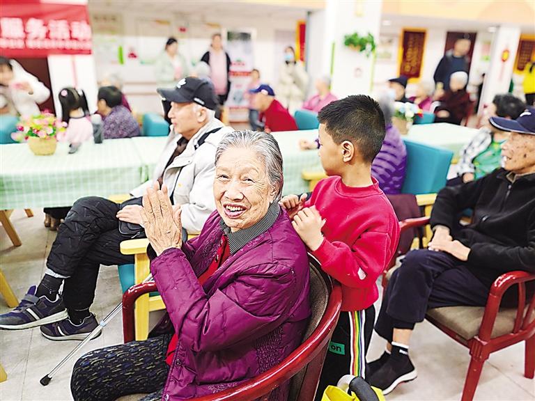 3月5日,銀川市金鳳區(qū)長(zhǎng)城中路街道花樣年華社區(qū)聯(lián)合共建單位寧夏孝慈園養(yǎng)老服務(wù)中心、博苑花樣年華幼兒園開展“春日學(xué)雷鋒 真情暖夕陽(yáng)”活動(dòng)。圖為花樣年華社區(qū)小志愿者看望養(yǎng)老院老人。記者 智慧 攝