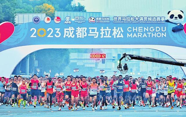 成馬開(kāi)跑 2023年10月29日,2023成都馬拉松鳴槍起跑,來(lái)自全球的35000名跑者共享公園城市魅力。