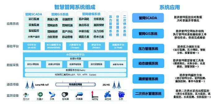 依托智慧蓉城和智慧水務(wù)建設(shè),圍繞“高效處置供水一件事”,搭建供水智慧化管理體系。如成都市自來(lái)水公司2019年便建成了集生產(chǎn)調(diào)度系統(tǒng)、SCADA(數(shù)據(jù)采集與監(jiān)視控制)系統(tǒng)、管網(wǎng)GIS系統(tǒng)等融合的城市供水系統(tǒng)綜合信息系統(tǒng),涵蓋管網(wǎng)設(shè)施管理、管網(wǎng)巡檢、管網(wǎng)搶修、管網(wǎng)檢漏等模塊,實(shí)現(xiàn)數(shù)據(jù)資源的有效集成和互聯(lián)共享,已累計(jì)完成工單維修約50萬(wàn)張、表務(wù)約23萬(wàn)張、設(shè)施維護(hù)約18萬(wàn)張,巡檢記錄約46萬(wàn)條,實(shí)現(xiàn)供水管網(wǎng)精細(xì)化管控。