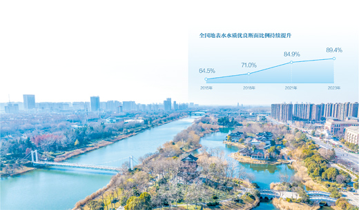 2023年,全國地表水水質(zhì)優(yōu)良斷面比例達到89.4%,比2012年提高27.8個百分點
