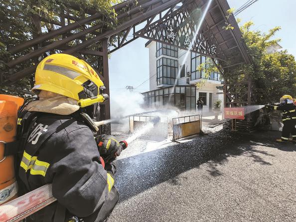 5月10日舉行的消防應(yīng)急演練中,電動(dòng)自行車(chē)自燃是關(guān)注重點(diǎn) 記者 張龍 通訊員 黃海華 攝