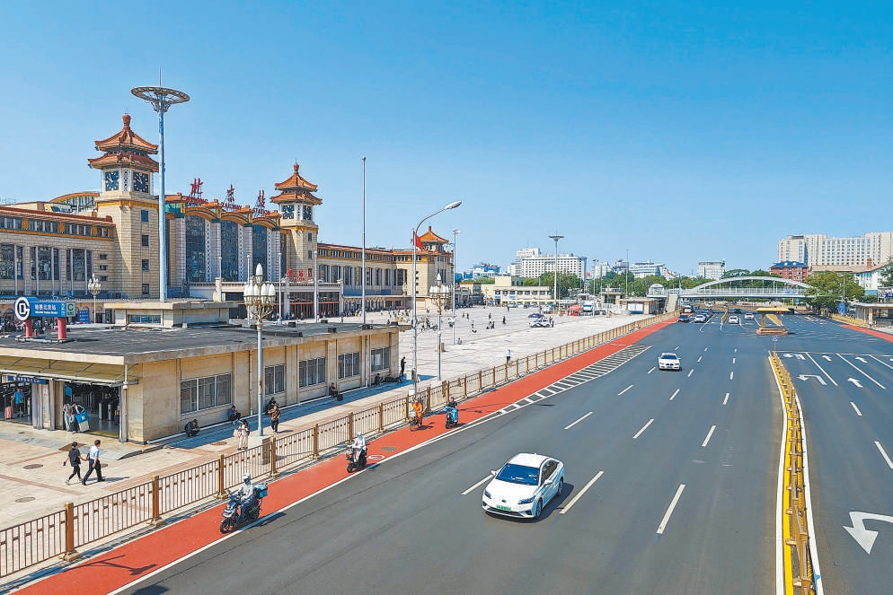 嶄新的瀝青路面,鮮艷的自行車“紅毯”,連續(xù)不斷線的步道……北京站前,經過大修的道路平整干凈,進一步提升了首都“迎賓門”的顏值。