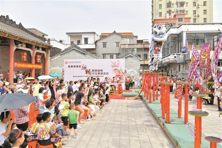 舞群獅、舞麒麟、樁獅等節(jié)目逐一上演……近日,新橋麒麟醒獅武術(shù)館的隊員們在曾氏大宗祠廣場獻(xiàn)上了一場精彩絕倫的武術(shù)和醒獅表演。這些隊員年齡從6歲至18歲不等,在14歲女隊長的帶領(lǐng)下,少年隊員們展現(xiàn)出了非凡的鼓技和醒獅技藝,彰顯了“少年強(qiáng)則國強(qiáng)”的精神風(fēng)貌。