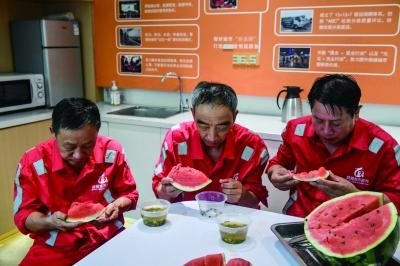 “來(lái),今天吃哈密瓜。”在位于棲霞區(qū)的南京博潤(rùn)環(huán)境公司仙林項(xiàng)目部安康驛站內(nèi),負(fù)責(zé)人汪洋切了滿滿一大盆哈密瓜張羅著在此歇腳的環(huán)衛(wèi)工人。記者在現(xiàn)場(chǎng)看到,這一新近打造的安康驛站內(nèi),空調(diào)、冰箱、微波爐等配套齊全,一邊的桌子上不僅擺放著清涼油、藿香正氣水、風(fēng)油精、人丹等防暑降溫用品,還配備著礦泉水、鹽汽水等飲品,“不僅備齊該有的物品,這里的服務(wù)時(shí)間還延長(zhǎng)至晚上9時(shí)后?!?/span>汪洋介紹。