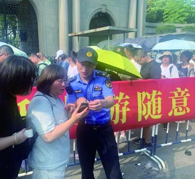 上午10時(shí)后,“總統(tǒng)府”景區(qū)前等待進(jìn)場(chǎng)的游客逐漸減少,李洋也將巡查保障的陣地由景區(qū)外轉(zhuǎn)至景區(qū)內(nèi)。和來(lái)自公安、文化執(zhí)法等部門的同志一起對(duì)景區(qū)內(nèi)的“黃?!薄o(wú)資質(zhì)導(dǎo)游等進(jìn)行規(guī)勸執(zhí)法等,“我們既是這座城市的管理員,也是這座城市的宣傳員,更是景點(diǎn)的引導(dǎo)員,讓更多人愛(ài)上有序的南京,熱一點(diǎn)、辛苦一點(diǎn)算不上啥?!崩钛笳f(shuō)。