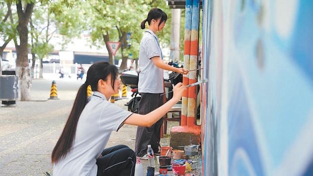 玉泉營街道風(fēng)格與林社區(qū),墻面變成“唱片機(jī)”,掃描二維碼還能同步聽到豐臺區(qū)創(chuàng)城主題歌曲《綻放》;東鐵匠營街道蒲安里第二社區(qū),破舊變電箱變身“貓爬架”,愜意自在的貓貓們嬉戲玩耍;大紅門街道南頂路社區(qū),樓體排水管成為“路燈”,青年坐在下面愜意閱讀……豐臺區(qū)委宣傳部副部長、區(qū)文明促進(jìn)中心主任劉屹介紹,今年共有來自清華大學(xué)、中央美院、英國埃克塞特大學(xué)等63所國內(nèi)外高校116名學(xué)子報(bào)名參與“學(xué)子回家 扮靚家園”活動(dòng),豐臺區(qū)26個(gè)街鎮(zhèn)聯(lián)合轄區(qū)學(xué)校,與回家學(xué)子一起,通過藝術(shù)與設(shè)計(jì)的融合,在大街小巷上開展墻面創(chuàng)意彩繪、城市景觀塑造等活動(dòng),“點(diǎn)靚”街區(qū)微空間,打造特色“文明打卡地”,扮靚自己的家園,提升著城市美學(xué)與文化氛圍。(記者 孫穎)