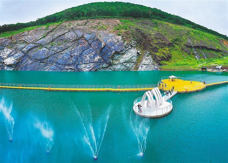 7月27日拍攝的黑龍江省寶清縣翡翠湖礦坑公園。當?shù)貙嵭小吧鷳B(tài)綜合修復+衍生產品植入”的發(fā)展模式,把滿目瘡痍的礦坑及周邊區(qū)域打造成特色生態(tài)休閑公園,激發(fā)旅游產業(yè)潛能。許叢軍 攝(中經視覺)