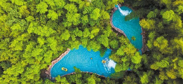 7月11日,浙江省湖州市吳興區(qū)紅里山村,游客在體驗漂流項目。近年來,該區(qū)積極推進礦山生態(tài)修復,依托現(xiàn)有林地、草坪、礦坑等自然資源,打造集親水體驗、山地越野、拓展研學于一體的生態(tài)旅游綜合體。何偉衛(wèi) 攝(中經視覺)