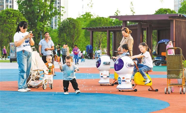 重慶市墊江縣白龍公園,市民在游玩。當?shù)匾呀ǔ纱笮」珗@近60個,盤活城市閑置空地,讓“推窗見綠、出門入園”成為城市生活常態(tài),讓市民享受“綠色福祉”。龔長浩 攝(中經視覺)