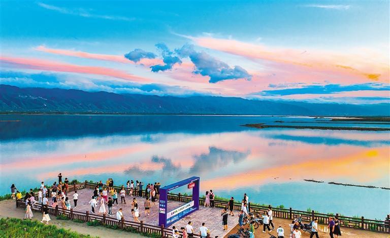 7月19日,山西省運城市鹽湖風光秀美,吸引各地的游客紛至沓來。近年來,該市不斷加大“退鹽還湖”“還湖于民”生態(tài)修復力度,把鹽湖從礦區(qū)、工業(yè)區(qū)變?yōu)樯鷳B(tài)保護區(qū)。閆鑫 攝(中經視覺)