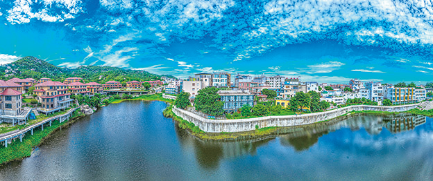 6 月27 日拍攝的廈門市思明區(qū)濱海街道黃厝社區(qū)塔頭社城中村的水庫(kù)(無人機(jī)拼接照片)。新華社記者 周義 攝