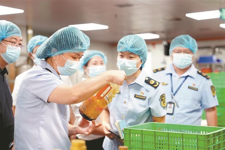 寶安市場監(jiān)管局執(zhí)法人員在學校檢查調(diào)味品質(zhì)量。