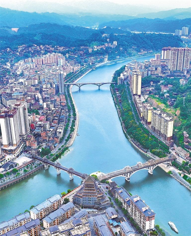9月7日,俯瞰貴州省錦屏縣城區(qū),青山綠水、城市建筑相互映襯。近年來,當(dāng)?shù)貓?jiān)持生態(tài)優(yōu)先綠色發(fā)展,著力整治清水江周邊環(huán)境,生態(tài)環(huán)境進(jìn)一步改善。姜繼標(biāo) 攝(中經(jīng)視覺)