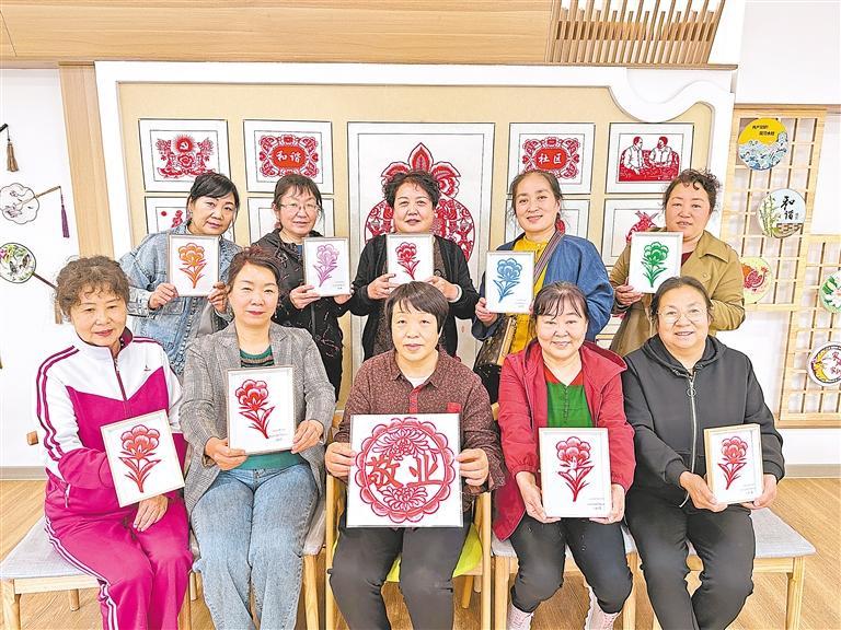 剪紙手藝人在“近鄰”黨群服務驛站展示剪紙作品。