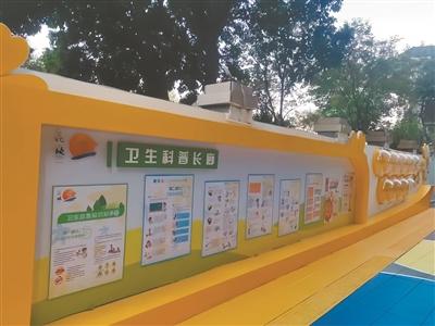 其中,新隆沙社區(qū)長(zhǎng)者和兒童居民較多,社區(qū)內(nèi)開放式小廣場(chǎng)常有居民帶小朋友散步玩樂(lè)。在本輪改造中,新隆沙社區(qū)特別加入“健康社區(qū)”和“友好兒童”主題。社區(qū)利用轄內(nèi)小廣場(chǎng)側(cè)邊的公用圍墻,打造成健康知識(shí)科普長(zhǎng)廊,以期刊的形式定期更新,內(nèi)容涵蓋公共衛(wèi)生、心理健康、應(yīng)急救助、法律法規(guī)等方面,擴(kuò)大宣傳普及面。一方面合理運(yùn)用原閑置空間開展科普宣傳,另一方面實(shí)現(xiàn)了社區(qū)容貌提升。(李元源)