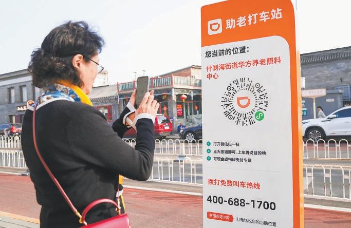 老年人通過助老打車站標(biāo)識(shí)牌方便快捷叫車。
