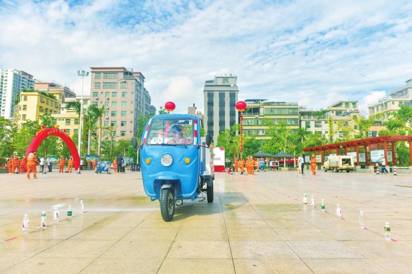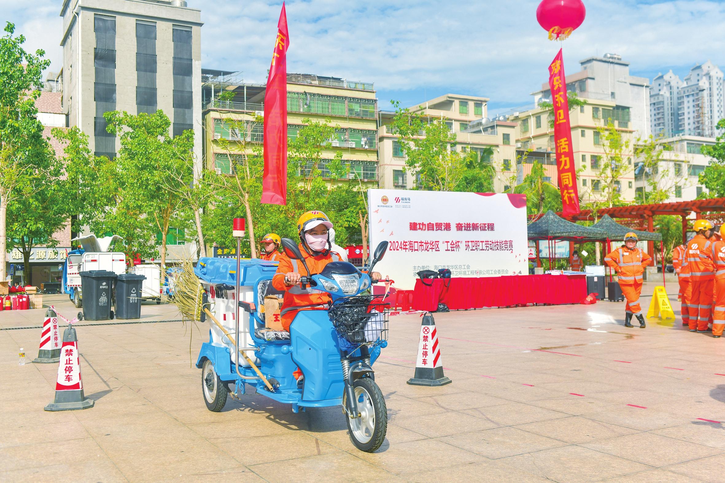 10月18日,海口市龍華區(qū)雙創(chuàng)廣場上熱鬧非凡,福龍馬海口公司近百名環(huán)衛(wèi)工人在進行技能比賽。他們激情四射,將自己最好的狀態(tài)、精湛的技術(shù)展現(xiàn),贏得了陣陣歡呼。