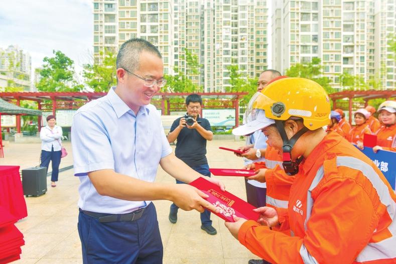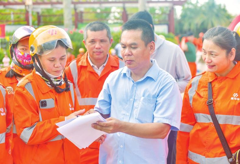 龍華區(qū)總工會黨組成員、副主席林勝雄,龍華區(qū)環(huán)衛(wèi)局副局長符嬌燕,福龍馬??诠究偨?jīng)理黃彪、副總經(jīng)理邢益芳、楊志剛出席,向為城市美麗辛勤付出的環(huán)衛(wèi)工人們加油打氣,并致以誠摯的感謝和節(jié)日的祝賀。