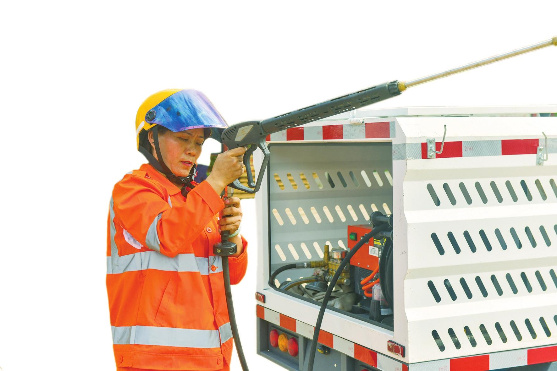 現(xiàn)場氣氛熱烈,福龍馬??诠经h(huán)衛(wèi)職工迅速而準(zhǔn)確地完成了各項作業(yè),從傾倒垃圾到擦拭果皮箱,再到細致的消殺工作,每一個動作都顯得熟練而流暢。這背后,是他們?nèi)諒?fù)一日、年復(fù)一年的辛勤練習(xí)和不懈努力。每一位參賽者都全力以赴,力求在比賽中發(fā)揮出自己的最佳水平。他們用實際行動詮釋了環(huán)衛(wèi)工作的嚴(yán)謹(jǐn)與細致,對每一個細節(jié)都保持著高度的關(guān)注和追求。