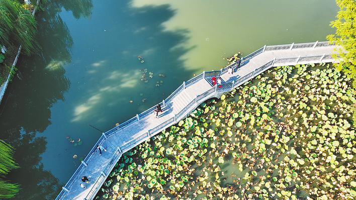 作為全國園林城市的合肥,環(huán)城公園宛如一條鑲嵌在城市中的翡翠項鏈。秋日,這里換上了華麗的盛裝。