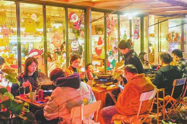 渝北區(qū)紫薇路商業(yè)街,市民在用餐。記者 崔力 攝\視覺重慶