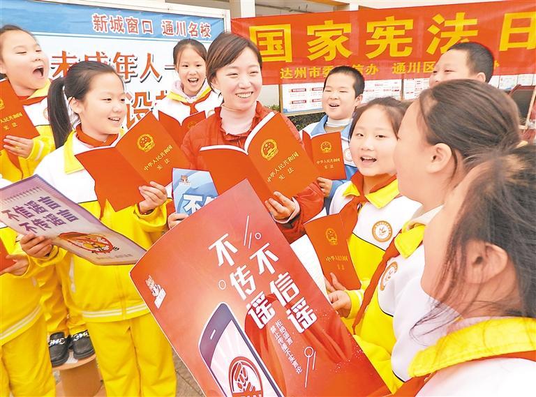 12月3日,在四川省達(dá)州市通川區(qū)羅江鎮(zhèn)魏興實驗學(xué)校,普法志愿者給學(xué)生講解憲法知識。今年12月4日是第十一個國家憲法日,各地開展形式多樣的活動普及憲法知識,宣傳法治觀念。2024年“憲法宣傳周”活動主題為“大力弘揚憲法精神,推動進(jìn)一步全面深化改革”,時間為12月1日至7日。新華社發(fā)