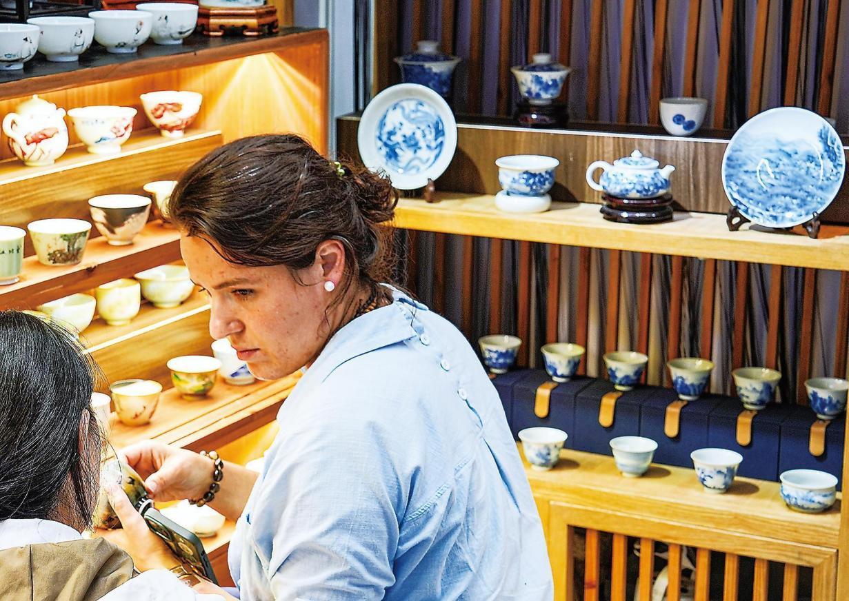 堅(jiān)持開展不同形式的對外交流活動(dòng),不斷發(fā)揮陶瓷文化“走出去”的重要作用,景德鎮(zhèn)持續(xù)搭建中外文化交流的橋梁。2023年10月,中國景德鎮(zhèn)陶瓷官方旗艦店在迪拜正式開業(yè)。目前,這一“旗艦出?!蹦J街凭暗骆?zhèn)173家陶瓷企業(yè)出口,“景德鎮(zhèn)制”不斷出圈。