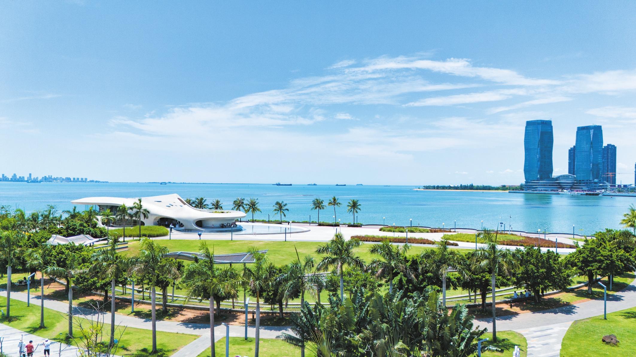 蔚藍(lán)天空下風(fēng)光旖旎的海口灣之濱。記者 蘇弼坤 攝