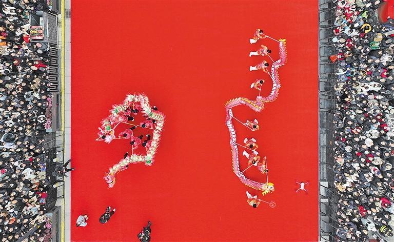 2月2日,江蘇省南通市崇川區(qū)南大街,“金蛇獻(xiàn)瑞樂(lè)通城”南通新春民俗巡游精彩上演。民俗巡游活動(dòng)采取歌、舞、樂(lè)的表演形式,由10個(gè)南通民俗方陣和2個(gè)特邀方陣組成,以大眾喜聞樂(lè)見(jiàn)的方式,讓市民游客盡享民俗文化盛宴。許叢軍 攝(中經(jīng)視覺(jué))