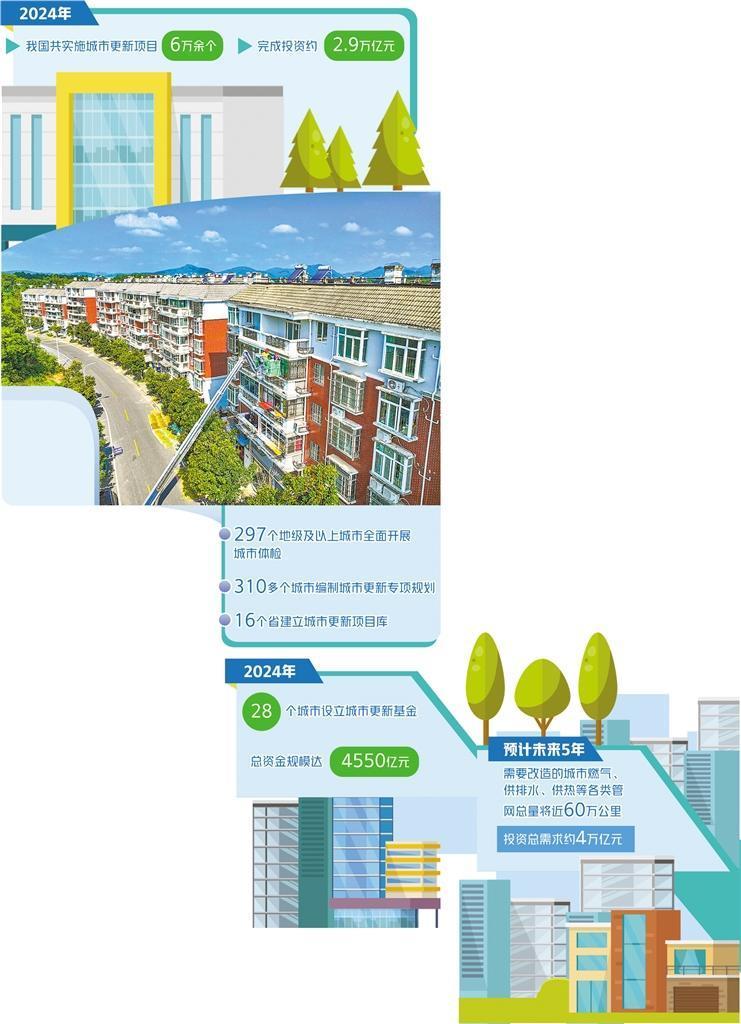 將優(yōu)先支持一批城市更新重點(diǎn)項(xiàng)目。劉蘇社表示,2023年至2024年,國家發(fā)展改革委安排中央預(yù)算內(nèi)投資、增發(fā)國債資金和超長期特別國債資金共超過4700億元,其中重點(diǎn)支持了城市燃?xì)?、排水等地下管網(wǎng)改造和城鎮(zhèn)老舊小區(qū)改造等城市更新項(xiàng)目。今后幾年,城市更新仍是政府投資的重點(diǎn),2025年也將繼續(xù)加大力度。