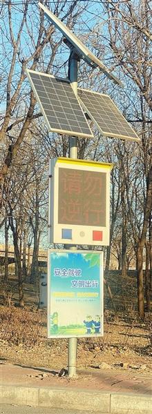 “因?yàn)榫τ邢?,民警不可?4小時(shí)蹲守在主要路口,對交通參與者進(jìn)行安全駕駛宣傳,所以我們就研究、借鑒外地的先進(jìn)經(jīng)驗(yàn),設(shè)置了這樣的交通安全電子牌。它的好處是能夠長期、潛移默化地影響交通參與者,比一兩次宣傳的效果要好?!笔泄簿直背椒志纸痪刃蚬芾泶箨?duì)負(fù)責(zé)人告訴記者。為了節(jié)能減排,他們選擇太陽能為電子牌供電,這些電子牌是找專門廠家定制的,可以提前預(yù)錄提示文字和提示音。