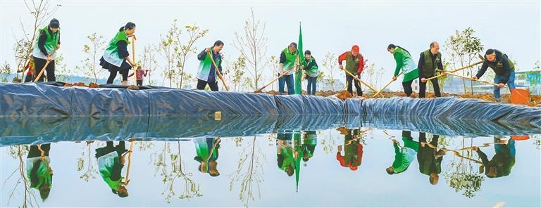 3月12日,湖南省永州市道縣上關(guān)街道虎子巖社區(qū),志愿者在植樹(shù)。陳磊 攝(中經(jīng)視覺(jué))