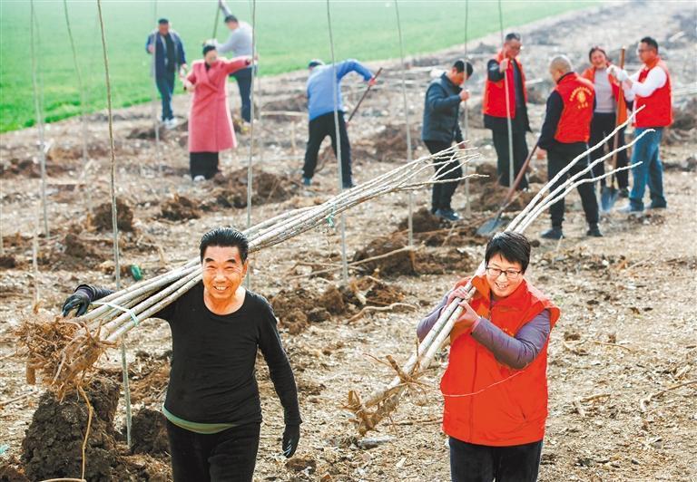 3月11日,河南省焦作市博愛(ài)縣許良鎮(zhèn)泗溝村,村民在搬運(yùn)樹(shù)苗。程全 攝(中經(jīng)視覺(jué))