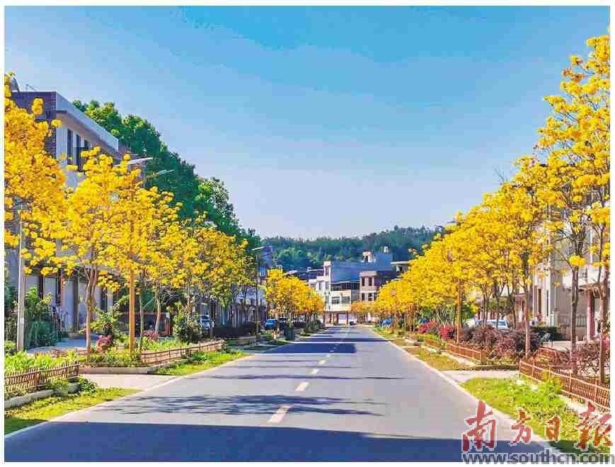 畬江鎮(zhèn)道路兩旁的黃花風(fēng)鈴木美麗綻放。受訪者供圖