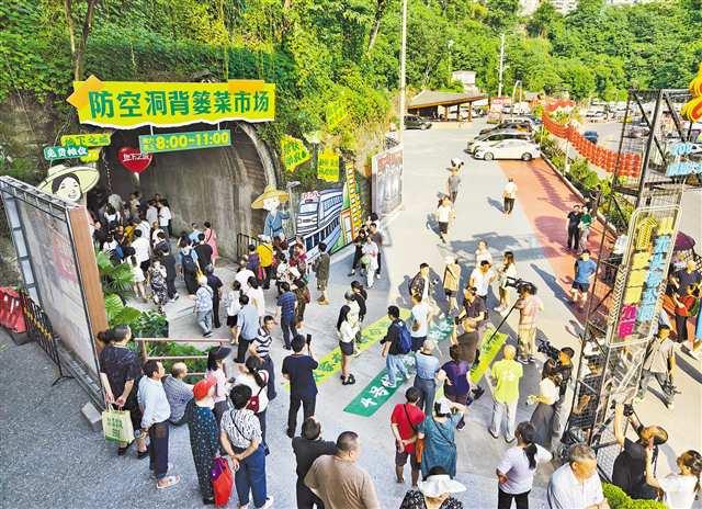 重慶建“洞子菜市”的探索很早就開始了。2021年,沙坪壩區(qū)石井坡街道和平山社區(qū)的大河溝菜市場因拆舊建新,臨時搬遷至映山紅公交站附近的一條廢棄鐵路隧道。搭建攤位、安裝照明、制作標識、安排專人保潔,經(jīng)過改造,這條建于20世紀60年代的隧道,被打造成便民利民的“洞子菜市”,服務(wù)周邊4000多戶居民。