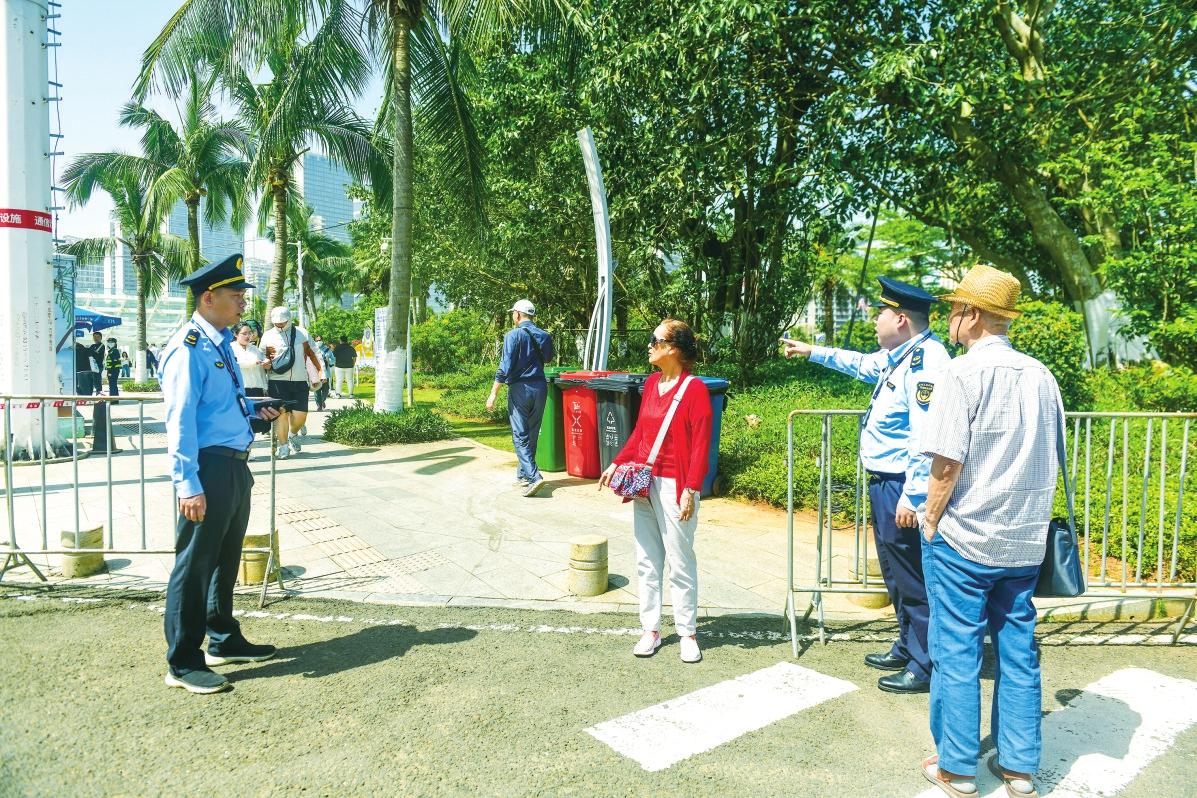消博會(huì)期間,???/span>市綜合行政執(zhí)法局秀英分局執(zhí)法人員為市民指引道路。