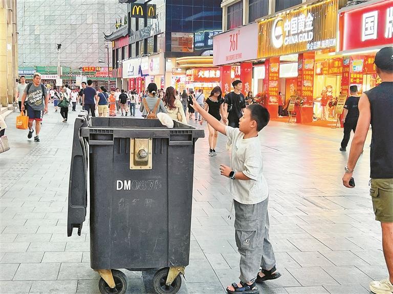 如此龐大的客流量,卻沒(méi)有讓街區(qū)變得雜亂無(wú)章,街道依舊干凈整潔。這離不開環(huán)衛(wèi)工人的辛勤付出,王阿姨便是其中的代表。假期五天,她持續(xù)作業(yè),不僅要處理日益增多的垃圾和紙箱等廢棄物,還被調(diào)派至人流密集區(qū)域加強(qiáng)保潔力度?!白蠲Φ臅r(shí)候是下午4點(diǎn)到6點(diǎn),我們得保證垃圾不落地?!蓖醢⒁踢吳謇韽U棄飲料瓶邊告訴記者。