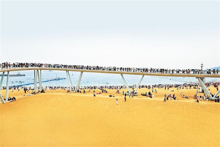 深圳大梅沙海濱公園空中觀海棧道被“人潮”填滿。記者 陳玉 攝