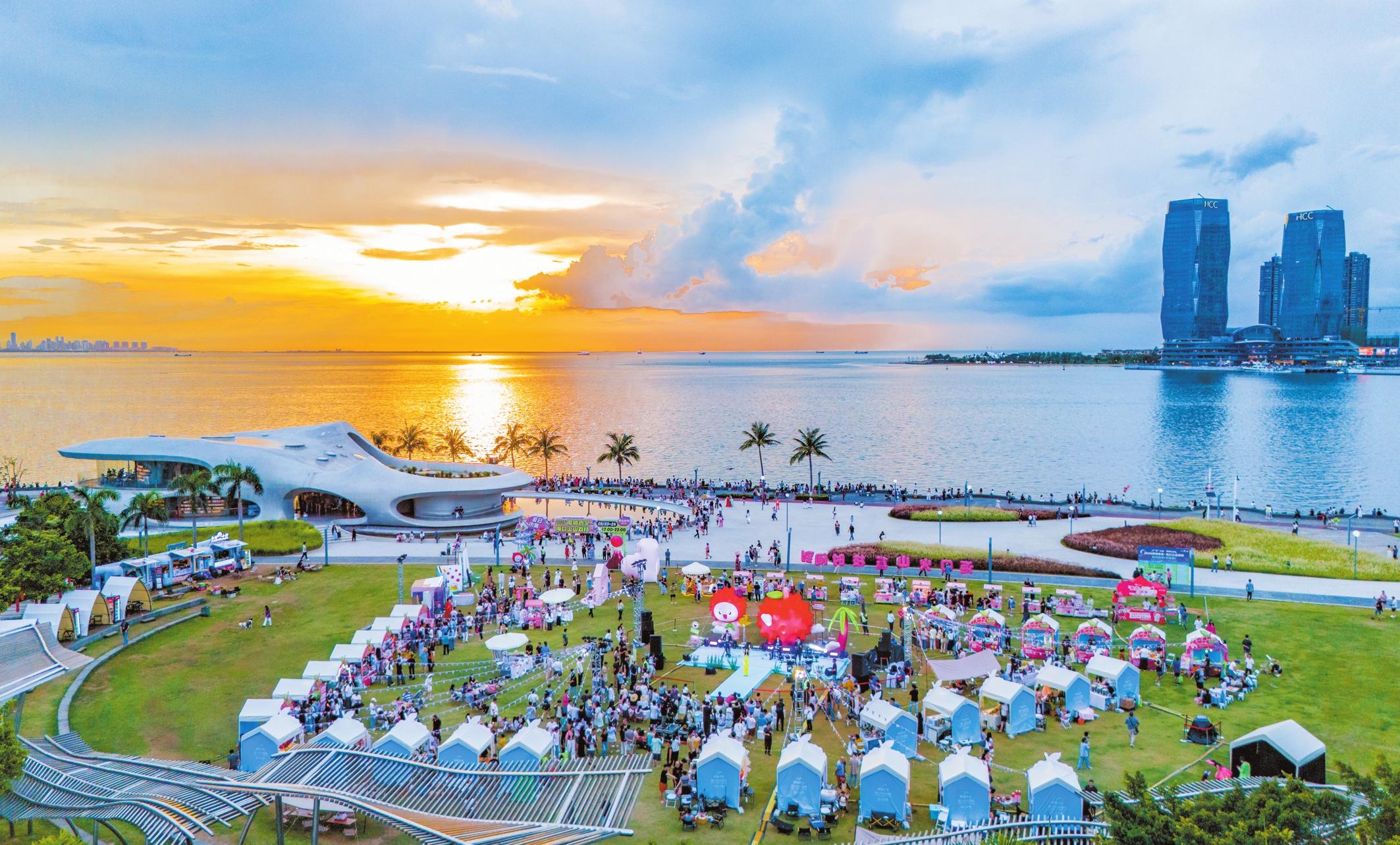文化浸潤(rùn),以精神豐盈塑造城市品格。華燈初上,世紀(jì)海角文化商業(yè)街區(qū)的霓虹與晚霞交相輝映。手工藝人展示黎錦編織技藝,街頭樂(lè)隊(duì)奏響海南民歌,游客舉著“老爸茶”奶茶打卡拍照——這條2023年開(kāi)業(yè)的特色街區(qū),已成為海口夜經(jīng)濟(jì)的“流量擔(dān)當(dāng)”。