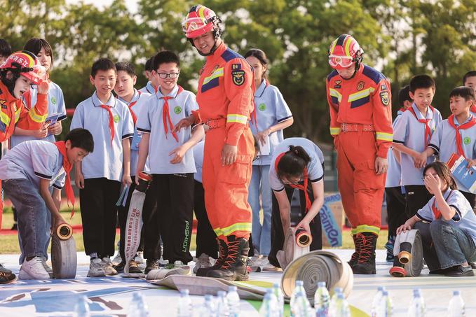 近日,鹽城市鹽都區(qū)消防救援大隊(duì)開(kāi)展消防宣傳進(jìn)校園活動(dòng)。活動(dòng)現(xiàn)場(chǎng)內(nèi)容豐富、形式多樣,為北龍港小學(xué)廣大師生和家長(zhǎng)帶來(lái)了一場(chǎng)別開(kāi)生面且具有教育意義的消防安全知識(shí)盛宴。 王小康 攝
