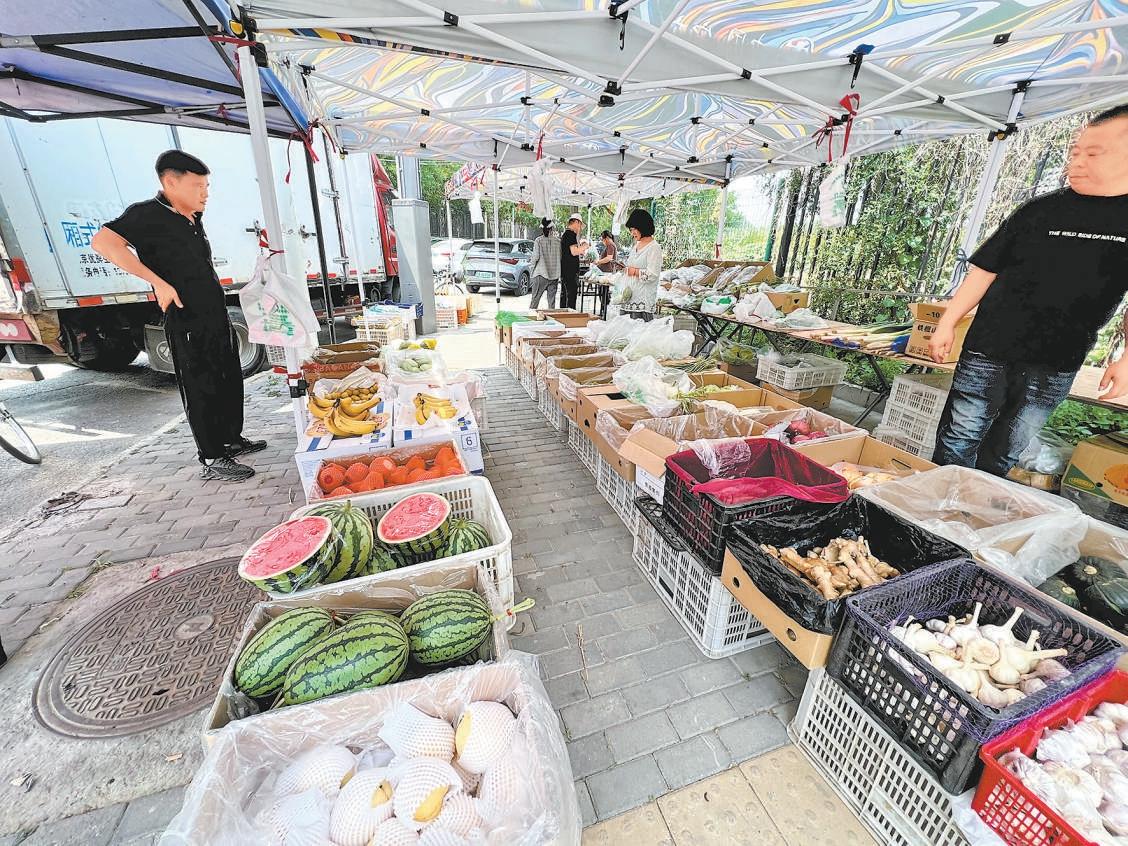位于通州區(qū)宋莊鎮(zhèn)的香溪郡、荷香里兩個社區(qū)屬于新建社區(qū),居住人口約6000人。但過去,周邊缺乏商超等配套服務(wù)設(shè)施,僅有四家小型超市,售賣的蔬菜水果種類和數(shù)量有限。此前,小區(qū)附近的路邊,偶有附近村民聚集,占道售賣蔬菜水果等農(nóng)產(chǎn)品。樸桂善說,雖然買菜方便了,但是游商流動性大,售賣的蔬果品質(zhì)良莠不齊。