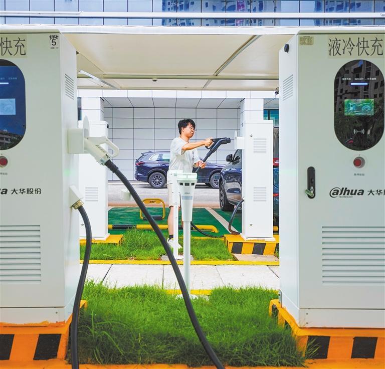 6月23日,市民在江西省撫州市南豐縣琴城鎮(zhèn)為新能源車(chē)充電。近年來(lái),該縣加快推進(jìn)新能源基礎(chǔ)設(shè)施建設(shè),讓市民綠色出行更加便捷。謝東攝(中經(jīng)視覺(jué))