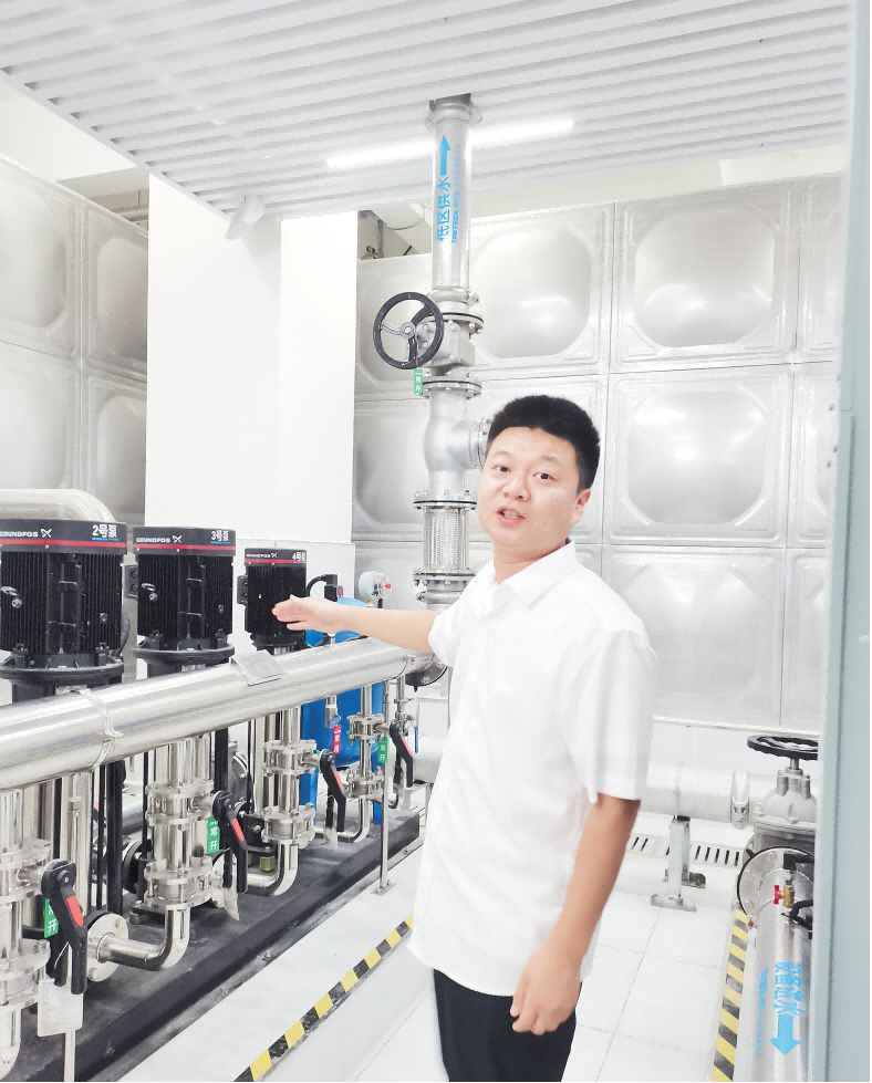 長沙水業(yè)集團(tuán)供水公司工程建設(shè)部工作人員石璧生說,鉑宮小區(qū)水表入戶改造時(shí)建設(shè)的供水房設(shè)備更智能。記者 劉軍 攝