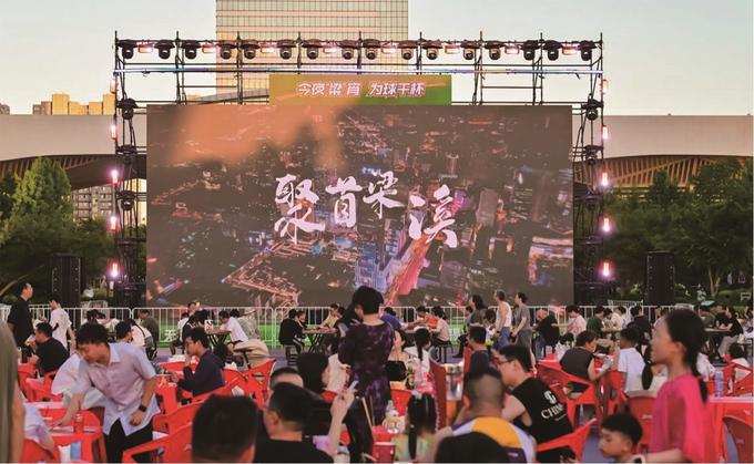 大屏幕前,人潮涌動,歡呼聲響徹云霄,在無錫江南古運(yùn)河畔,“蘇超”“第二現(xiàn)場”上演著堪比賽場的狂熱?!疤K超”的爆火,讓這個(gè)夏天格外熱鬧,梁溪多處化身足球狂歡勝地,惠山映月里祠田廣場、運(yùn)河匯水上舞臺、崇安寺二泉映月廣場、清名橋廣場……市民游客在大屏前暢聊戰(zhàn)術(shù),燒烤、啤酒、小龍蝦、各色小吃琳瑯滿目,夜色之下,巨幕與美食繪就動感十足的消費(fèi)熱力圖。